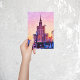 Beautiful warsawa poland artwork showing a sunset watercolor illustration of the polish capital. Great souvenir and gift idea.