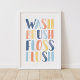 Wash Brush Floss Blush Colorful Bathroom Poster