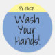 Simple two coloured sticker with adjustable text. By default the 4 text templates say "Please Wash Your Hands". It's important these days ref the corona crisis, but meant as a worthy reminder at any time. Either at work where several persons use shared facilities, or at home for specific sterile zones or special situations. And - some of us actually forget washing hands on a daily basis...