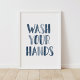 Wash Your Hands Navy Blue Kids Bathroom Poster