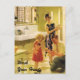 1920 illustration of a little gurl who has washed her hands in her lovely kitchen with her mum and dad. Dad is on his knees and smiling while examining her hands for cleanliness. Beautiful vintage family setting