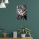 This poster for cat lovers features an original black and white photograph of a tabby cat washing her paw, with eye, nose and tongue in colour. There is fantastic detailing on the tongue.