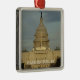 Square, metal ornament that features a photo image of the US Capitol Building, located in Washington, DC.. Makes a great travel souvenir and holiday ornament!