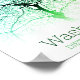 Modern poster shows tinted outline map of Washington, DC city layout with major streets, highways and bodies of water.