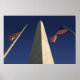 The Washington Monument with two American flags. Located in Washington DC along the National Mall..