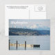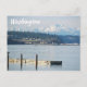 Travel postcard featuring a scenic photo image of the snow covered Olympic Mountains and Puget Sound as viewed from Tacoma, Washington.