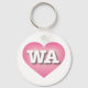 This keychain features a cool, pink heart with a white-washed centre containing the bold, white, upper case letters WA, the official abbreviation for Washington, the evergreen state.