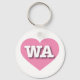 This keychain features a cool, pink heart containing the bold, white, upper case letters WA, the official abbreviation for Washington, the evergreen state.