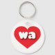 This keychain features a vibrant red heart containing the bold, white, rounded lower case letters wa, a playful abbreviation for Washington, the evergreen state.