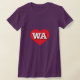This t-shirt features a vibrant red heart containing the bold, white, upper case letters WA, the official abbreviation for Washington, the evergreen state.