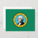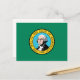 This design features the flag of the State of Washington, which is located in the Pacific Northwest region of the United States. It is named after George Washington (1732–1799), the first US president. Washington is often referred to as Washington State to distinguish it from the nation's capital, Washington DC. The flag depicts the state seal, which contains an image of state namesake George Washington, on a field of dark green. It is the only US state flag with a field of green; it is also the only state flag that contains the image of an American president.