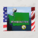 Washington State Map Faux Quarter, Seal, Mountains Postcard