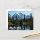 Travel postcard featuring a scenic photo image of picturesque Mount Shuksan reflected in Picture Lake, located in the North Cascades National Park, Washington State.