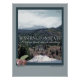 A digital painting of the landscape around Mount St. Helens. This is not an actual scene. Mount Hood peeks over from Oregon in the background. Mount Rainier enters the scene at the bottom. There is a blue border with a pair of red apples. The statehood year is in the top right corner, 1889. In the centre, the white text reads: "Washington State", "For you and me, a destiny", "Alki". Image Copyright ©2023 Kimberly J Tilley.