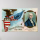 An eagle, the American flag and a portrait of George Washington, first president of the U.S., 1789 - 1797, from a vintage 1908 postcard commemorating his birthday.