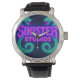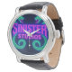 Men's black vintage leather watch with Sinister Studios logo!