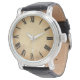 Vintage watch face design has bold roman numerals on a parchment coloured background. Try this design on any watch on this website. Derived from freepik.com.