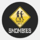 Cool and funny design featuring a sign with two walking people watching at their smartphones like zombies and the quote "Watch out Smombies".
