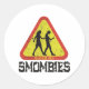 Cool and funny design featuring a sign with two walking people watching at their smartphones like zombies and the quote "Watch out Smombies".