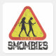 Cool and funny design featuring a sign with two walking people watching at their smartphones like zombies and the quote "Watch out Smombies".
