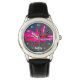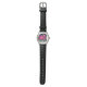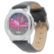 Designer watch with a hot pink water lily, white numbers that can be removed, and a name that can be changed.