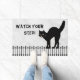 This is a Halloween illustration with a silhouette of a black cat on a fence with a gray/white-grunge background and a greeting, "Watch your step".  Decorate your home or office this Halloween holiday with a custom welcome mat.