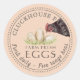 A cheery shade of melon with brown earth tone-coloured ink on an original hen and eggs illustration. Dotted border makes this a classy old-fashioned label for your eggs or hen house correspondence. Openface font.