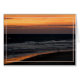 Two children stand at the edge off the surf to watch the Sun rise over the ocean.
