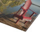 This amazing Getty Images photo features a red chair on a dock at the cottage looking out onto the water.