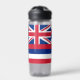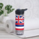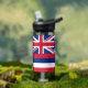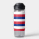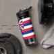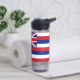 This water bottle proudly displays the flag of Hawaii, known for its distinctive and colourful design. The flag features eight alternating horizontal stripes of white, red, and blue, representing the eight main islands of Hawaii. In the top left corner is the Union Jack, symbolising Hawaii's historical ties to the United Kingdom, and on the right side, a red, white, and blue stripe with eight white stars representing Hawaii as the 50th state of the USA.