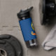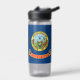 This water bottle proudly displays the flag of Idaho, which features a bold blue field with the state seal in the centre. The seal includes symbols representing the state's rich heritage, including a miner and a woman, signifying equality and justice. The words "State of Idaho" are displayed on a red and gold banner beneath the seal.
