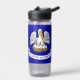 This water bottle proudly displays the flag of Louisiana, which features a field of blue with a pelican feeding its young inside a nest. Surrounding the pelican is a ribbon with the state motto "Union, Justice, and Confidence." This design embodies Louisiana's unique culture and heritage.