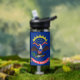 Stay hydrated with pride using our water bottle featuring the flag of North Dakota!