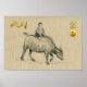 Wash painting style of a water buffalo with a child, original painting by RB on Vietnamese handmade textured paper (image printed) + large golden "2021", "Year of the Ox" and small golden round for the ideogram of the OX. Design on horizontal small poster. Available with other original paintings. Matching greeting card, holidays postcard, invitations, craft supplies, party supplies (soon). Perfect for Chinese and Vietnamese New Year of the Ox 2021 or birthday (people born in Ox Year).