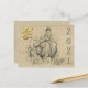 Wash painting style of a water buffalo with a child holding a book in his hands, original painting by RB on Vietnamese handmade textured paper (image printed) + golden "Year of the Ox" and "Happy Chinese New Year" or "Happy Vietnamese New Year" + large 2021 to customise if you need. Design on horizontal basic postcard. Available with other paintings. Matching greeting card, invitations, craft supplies, party supplies and more... Perfect for Chinese and Vietnamese New Year of the Ox 2021 or birthday (people born in Ox Year).