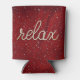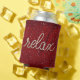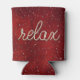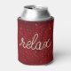 Relax text in nautical rope design on red leather texture with water droplet condensation pattern.