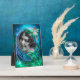 Decorative teal and green water faerie fantasy border artwork adorns this stand-up photo plaque- making it a great desktop addition to any room. Makes a great gift for weddings, birthdays, anniversaries, weddings - any holiday.