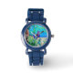 Original Drawing by Sandra Gale of an under Sea environment filled with tiny sea creatures and featuring three sea horses that have equine horse heads and sea horse bodies. These fantasy type sea horses are floating amongst seaweed and air bubbles and looks great on this clock!