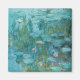 This design features a painting by French impressionist artist Claude Monet (1840–1926). It shows the an attractive arrangement of flowering water lilies on the pond at his home in Giverny, northern France. The lilies are painting in beautiful shades of turquoise and green. The original work was completed in 1915, and it is now in the collection of the Neue Pinakothek in Munich, Germany.