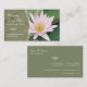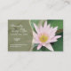 If spa services, flowers or event planning are your business then this is the card for you. A closeup of a pink pink water lily lends a soft tone to this business card while your customised information stands out against a transparent sage green with the image peeking through. Available in alternate designs with matching products.
