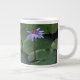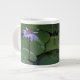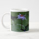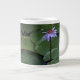 The artwork on this Giant Mug is an original photograph by MaeFlowers of a water lily, a flower blooming amid the lily pads floating on the water. The flower is a lovely lavender blue colour, standing out from the dark green, round lilypads.
