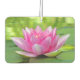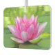 This fine art floral air freshener features an exquisite pink water lily lotus flower resting on circular green lily pads. Luminous golden water reflections glow between the pads of this lovely pond. A great idea for gardeners!