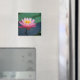 A beautiful single pink water lilly among green leaves. The original is a miniature oil painting by Kathie Miller