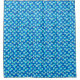 Shower curtain in a pattern of water lilies floating on a pond, in shades of turquoise, blue and white, on a deep blue background