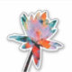 Colourful water lily with lavender, orange, green, turquoise, pink, blue and red.  The original image was a yellow water lily, edited for the beautiful colours.