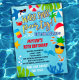 Customise your own water park party birthday invitations for boys and girls with a shark and pineapple design.
