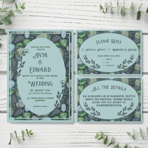 Hand painted watery pebbles design in cool tones - wedding sticker for invitation envelopes