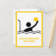 Water polo player black silhouette vertical postcard showcasing a minimalist pictogram icon of a black silhouette of a water ball player holding his ball in front of the goal and your text on white background with yellow border. This cool, modern design is a template and it is completely customisable. Personalise it and change text with monogram, name or your message.