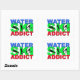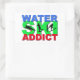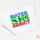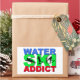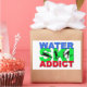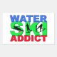 For the water ski addict! Black silhouettes of slalom, trick and jump water skiers with the text "water ski addict" in blue, green, and red letters.
