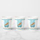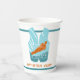 Add a personalised touch to your next party with these water-skiing themed party cups. They feature an illustration of a water skier in orange set against teal blue and light blue water. The graphic is in the shape of a life jacket vest. Your custom message appears below the illustration in orange lettering.
